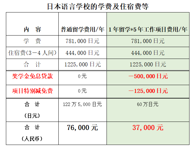 4.出境前只需向学校交纳60万日元(含1年学费及1年住宿费)即可,相当于减免50%的费用,是普通留学费用的一半;
