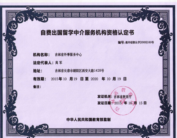 服务机构资格认定书