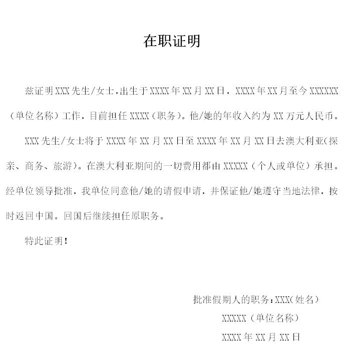 中文在职证明模板