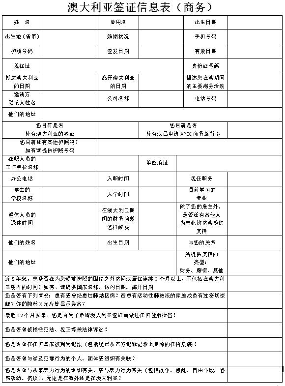澳大利亚商务签证信息表