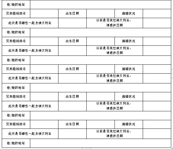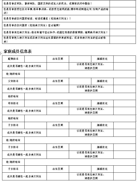 澳大利亚探亲旅游签证信息表