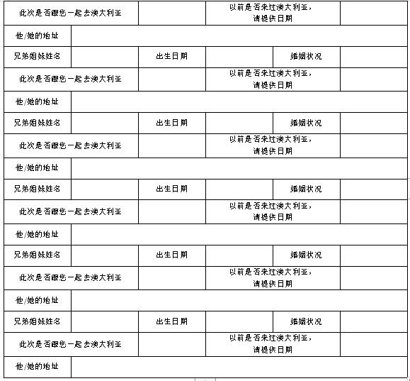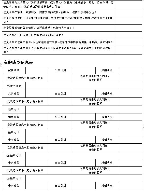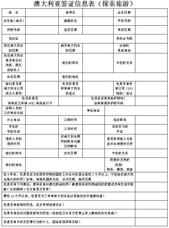 澳大利亚探亲旅游签证信息表