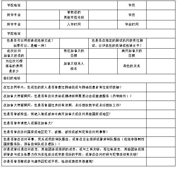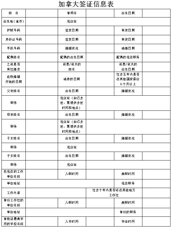 加拿大签证信息表