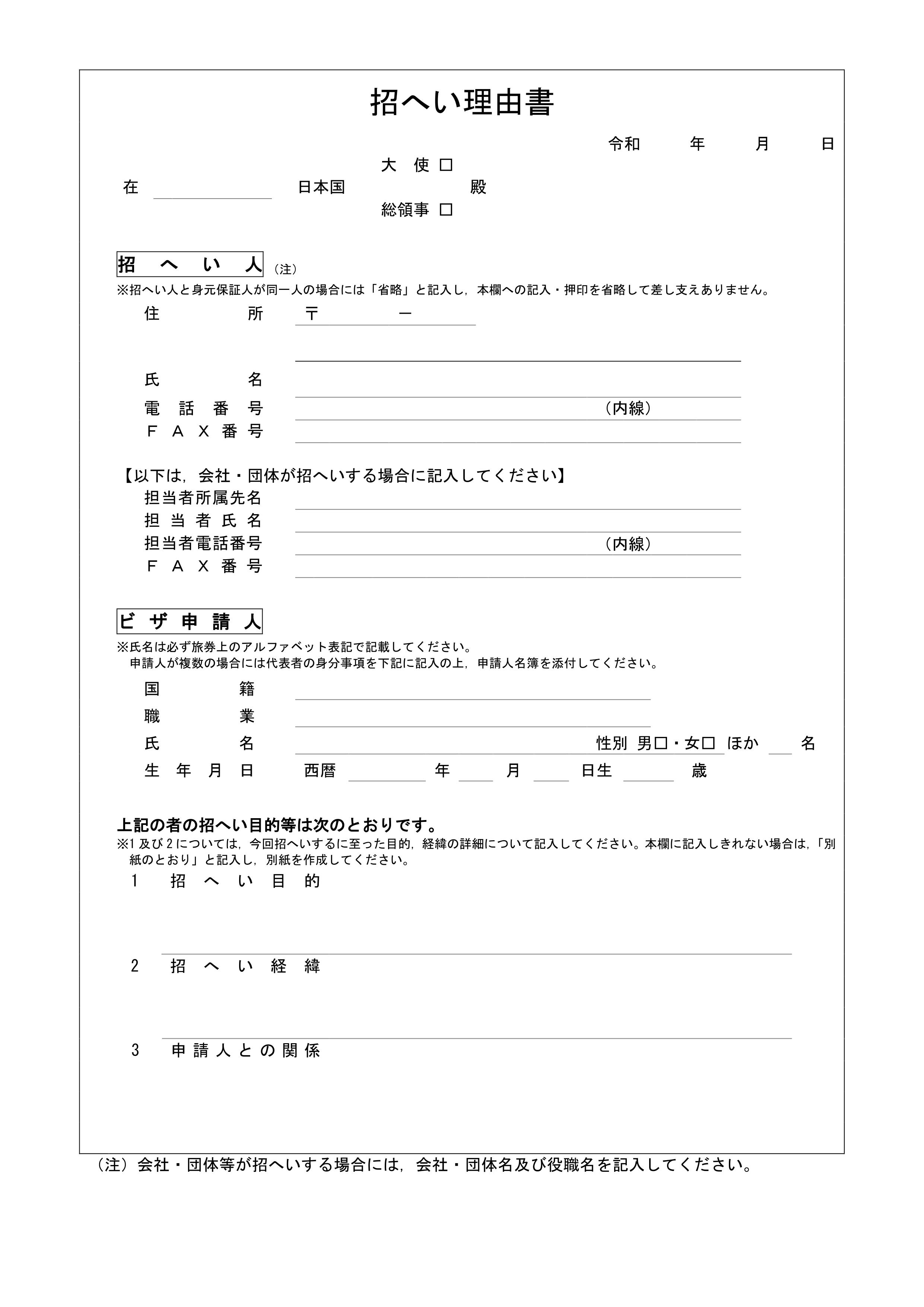 日本探亲、访友、商务——邀请理由书