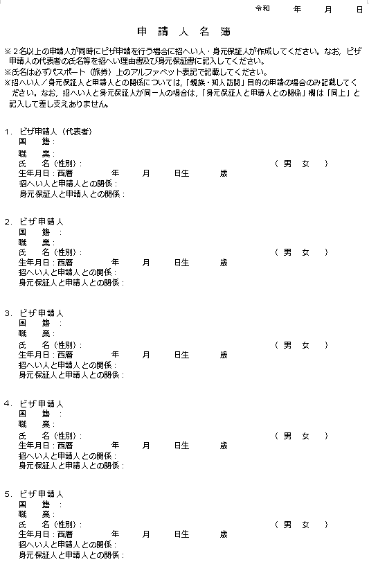 日本探亲、访友、商务——申请人名薄