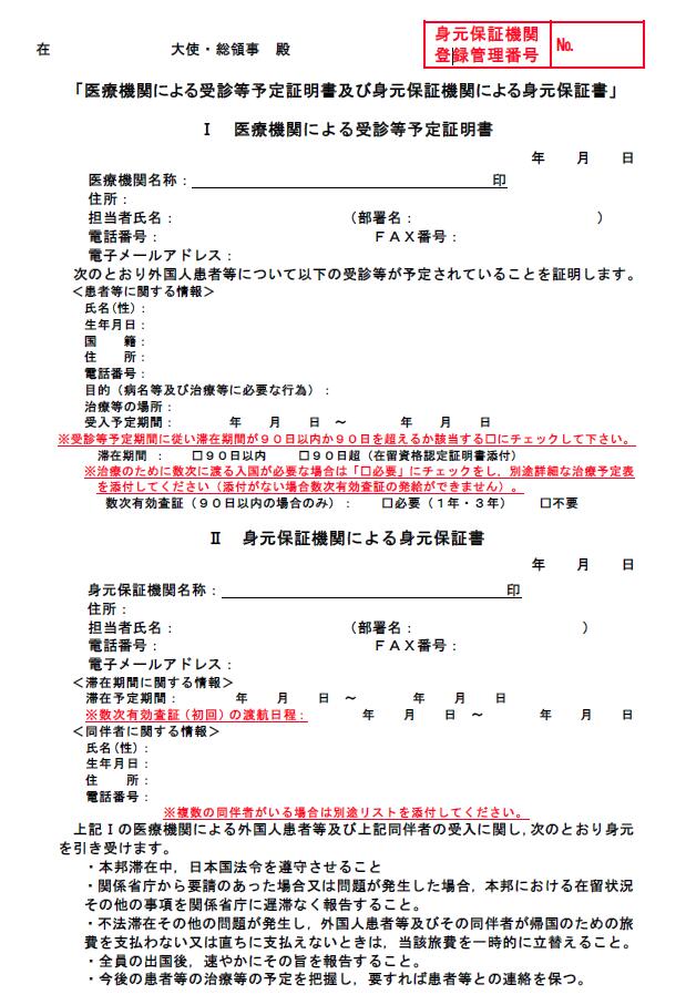 医疗机构出具的预约诊断书及身元保证机构出具的身元保证书