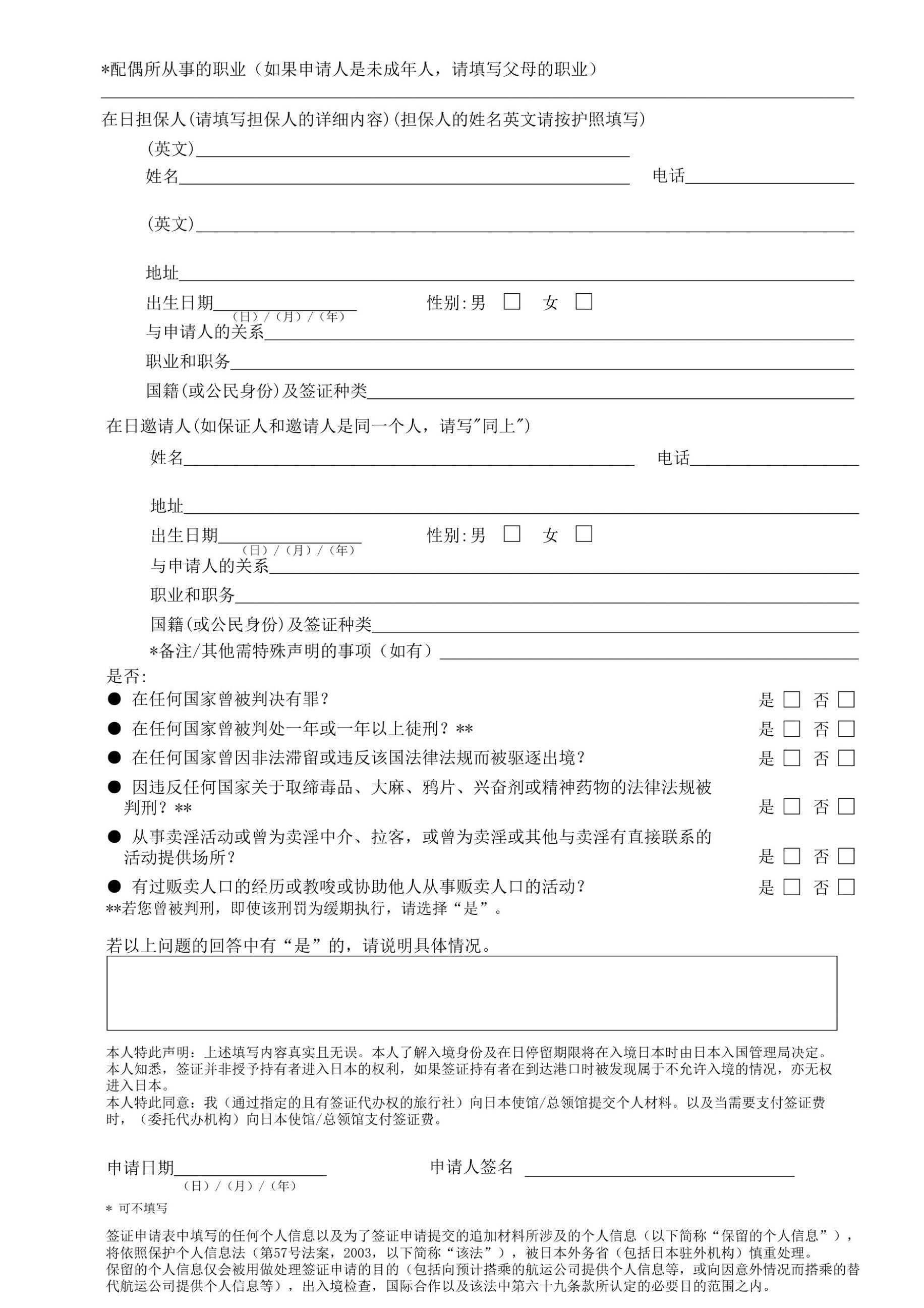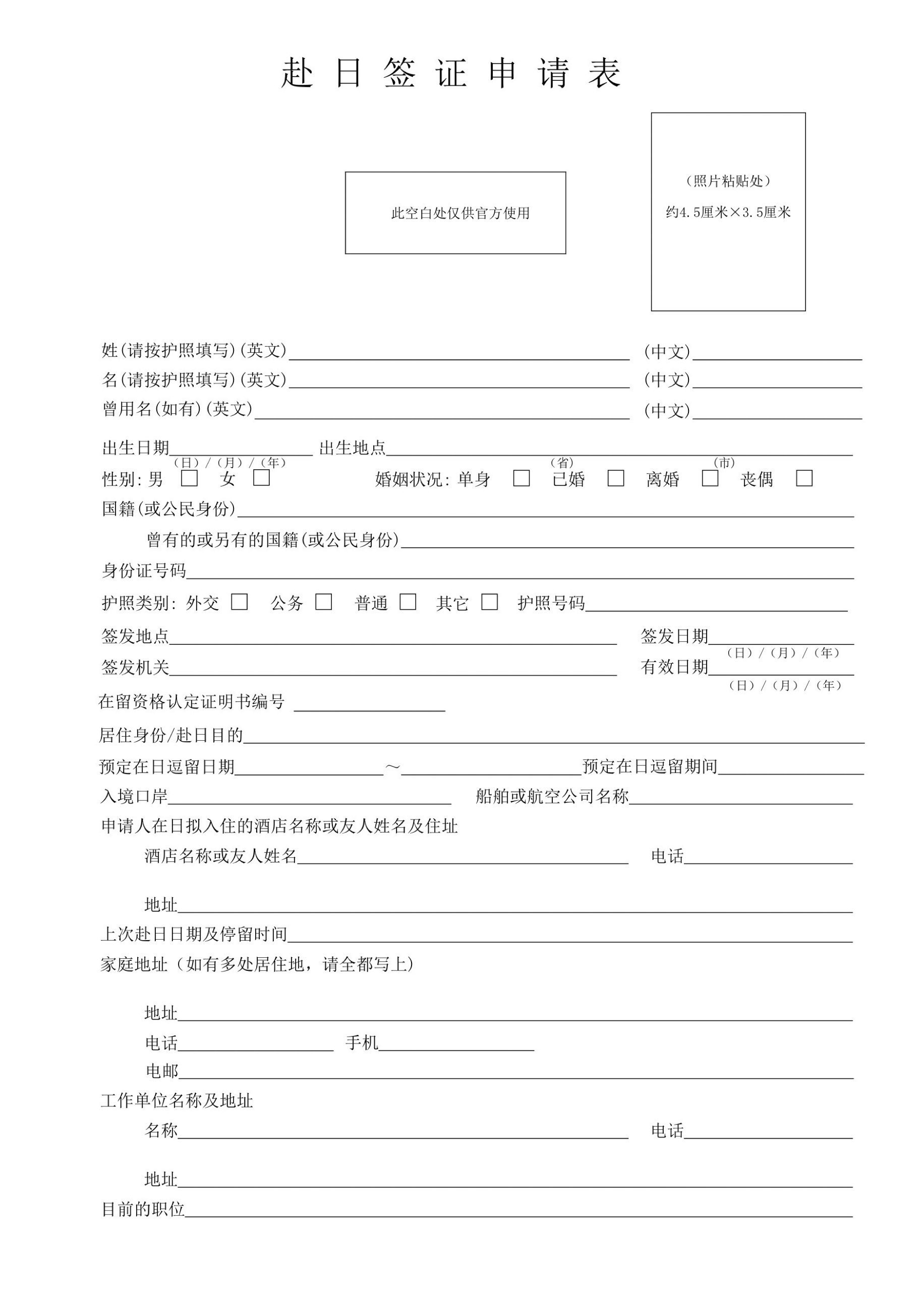 日本签证申请表